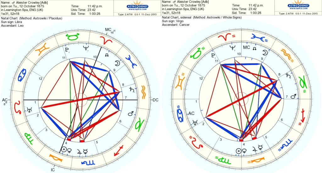 Speaking of ‘wicked in disposition’, the notorious magician Aleister Crowley, dubbed the ‘wickedest man the world’ had such a potentized Saturn, regardless of which zodiac and house system you use, along with two other Mahapurusha Yogas in the Jyotish chart.