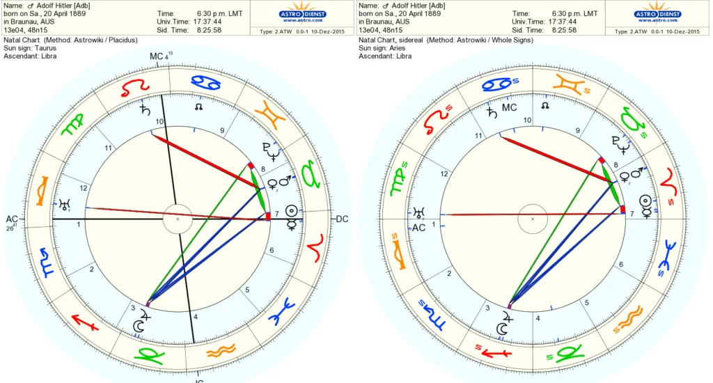 Adolf Hitler and Muhammed Ali both have Mars in Sidereal Aries; Hitler in the 7th and Muhammed Ali in the 10th. Both were in different ways ‘professional warriors’ who were also arguably ‘powerful and arrogant’.
