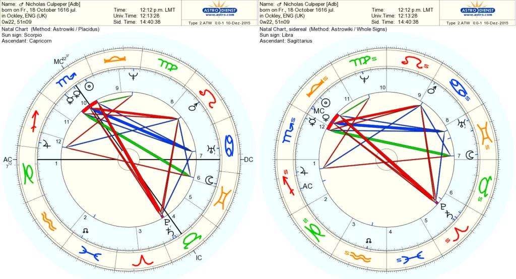 (5) Nicholas Culpeper did indeed suffer his share of tragedy and frustration attributable to the debilitated planets in his chart. His mother died of breast cancer when he was young, and he himself was shot in the chest during military service. Note debilitated Mars in Sidereal Cancer also in the chart of Mata Hara, executed by gunshot.