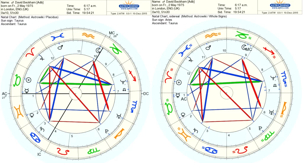 Good looking David Beckam’s Jyotish chart contains Malavya Yoga (Venus in Taurus in the 1st House). He’s conspicuously ‘endowed with wife and child‘, and he is as famous for his Venusian virtues and life narrative as his athletic prowess (that seems amply accounted for by nimble Mercury on his Ascendant and Mars in the 10th).